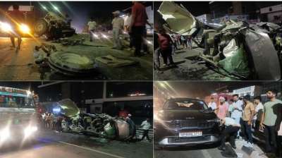 तेज रफ्तार कार की टक्कर से ट्रैक्टर तीन टुकड़ों में बंटा, चालक गंभीर घायल