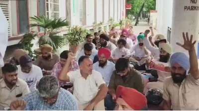 होशियारपुर में वकीलों और सहायक लेबर कमिश्नर के बीच विवाद, दफ्तर के बाहर धरना