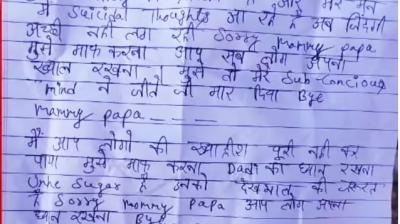 मेडिकल एंट्रेंस की तैयारी कर रहे छात्र ने छोड़ा सुसाइड नोट, लिखा – ‘मम्मी-पापा सॉरी, मुझे अनवॉन्टेड थॉट्स आ रहे’, दी जान