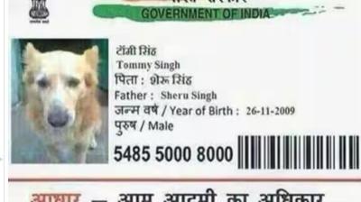 कुत्ते का आधार कार्ड जारी, नाम रखा गया टॉमी जैसवाल