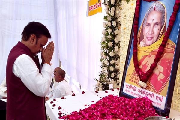 उप मुख्यमंत्री शुक्ल ने स्वर्गीय जनकदुलारी शर्मा को अर्पित की श्रद्धांजलि