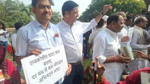 विधानसभा के सदन पर बजट रखने के पहले ही विपक्ष के सभी विधायकों ने हाथ में कर्ज का गुल्लक रखकर सरकार का विरोध किया है, विपक्ष के नेता प्रतिपक्ष का कहना है कि सरकार कर्ज में डूबी हुई है सरकार का खजाना पूरी तरह खाली है और सरकार के द्वारा प्रदेश की जनता का पैसा पानी की तरह बहाया जा रहा है. सरकार का जो बजट आ रहा है वह लोगों को गुमराह करने का बजट है।