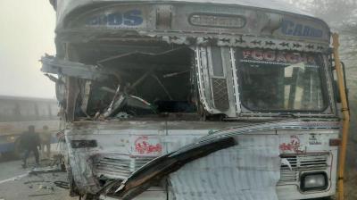 नई दिल्ली। राजस्थान के सीकर जिले में बुधवार सुबह धुंध के कारण चार बस-ट्रक की भिड़ंत हो गई। इसके बाद और गाडिय़ां बस से टकरा गईं। हादसे में 10 लोग...