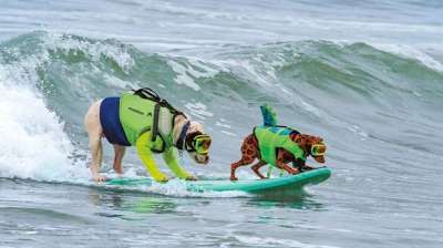 समुद्र की लहरें, और सर्फिंग बोर्ड पर सजे-धजे डॉग्स....आखिर क्या हैं माजारा