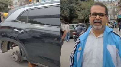 AAP नेता अवध ओझा की कार से चोरी हुए पहिये, वीडियो में कैद हुई घटना