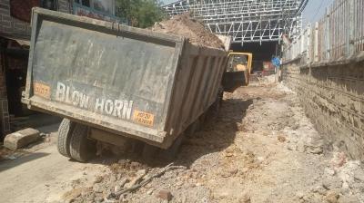 लापरवाही का गड्ढा: मलबे में धंसा भारी-भरकम डम्पर, रेलवे कोचिंग डिपो के पास घंटों बाधित रहा मार्ग।