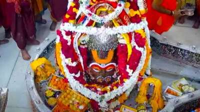 महाकाल मंदिर में आज भस्म आरती के दौरान हनुमान स्वरूप में श्रृंगारित हुए बाबा महाकाल