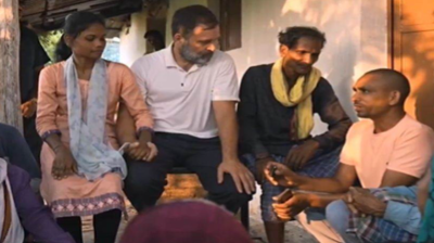 कांग्रेस नेता राहुल गांधी पहुंचे किसान के घर पहुंचे